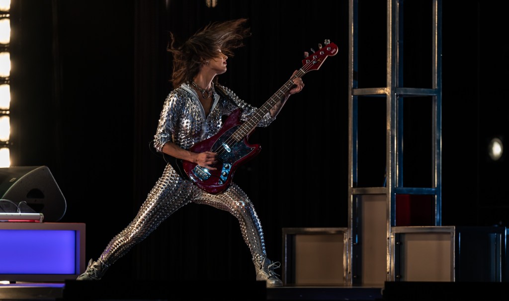Sur la scène de l’Espace Jean Lurçat à Juvisy-sur-Orge , Stéréo explose. Philippe Decouflé signe chorégraphie et mise en scène. Violette Wanty, Olivia Lindon, Eléa Ha Minh Tay, Aurélien Odout et Vladimir Duparc virevoltent entre pointes de ballet, plateforme shoes rétro-futuristes et acrobaties jouissives. Le groupe live – Arthur Satàn (guitare), Louise Decouflé (basse), Romain Boutin (batterie) – balance un son punk inspiré du film de Brian de Palma Phantom of the Paradise. Baptiste Allaert, danseur et comédien de la Compagnie DCA, qui devait danser et présenter le spectacle, blessé à la cheville droite quelques jours avant la représentation, n’a pu participer au spectacle. Philippe Decouflé et la troupe ont dû repenser Stéréo sans lui. Baptiste Allaert, assis au premier rang, était venu supporté ses camarades.